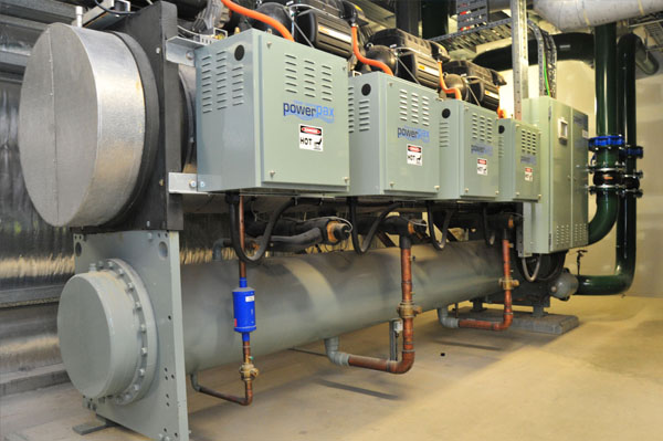 A Cogent energy plant comprising diesel generators, absorption chiller and waste heat exchangers has been installed by others. The air conditioning chilled and heating water is interconnected with the, by products, of the Cogent plant. The diesel generators provide dedicated power supply to the campus as an alternate energy source from the main electricity grid. The waste heat of this energy production is passed through an absorption chiller, which has been connected to the central chilled water system, providing sufficient chilled water for low load applications. In times of greater need the Magnetic bearing chiller provides chilled water for the whole site.